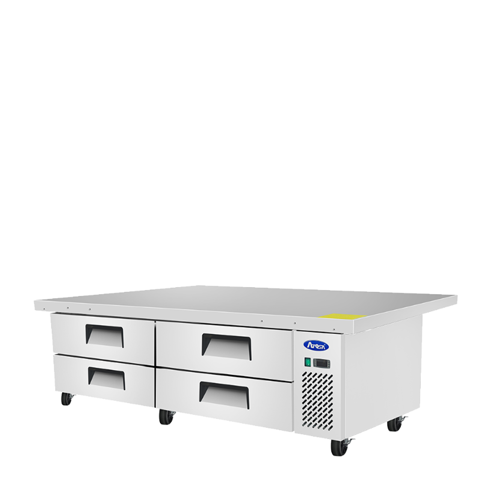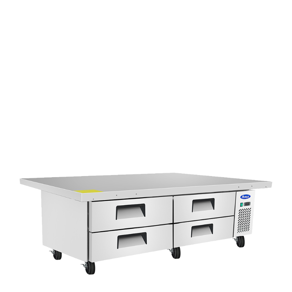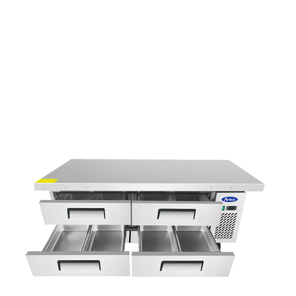 - One-piece heavy-duty reinforced stainless steel top to support countertop equipment