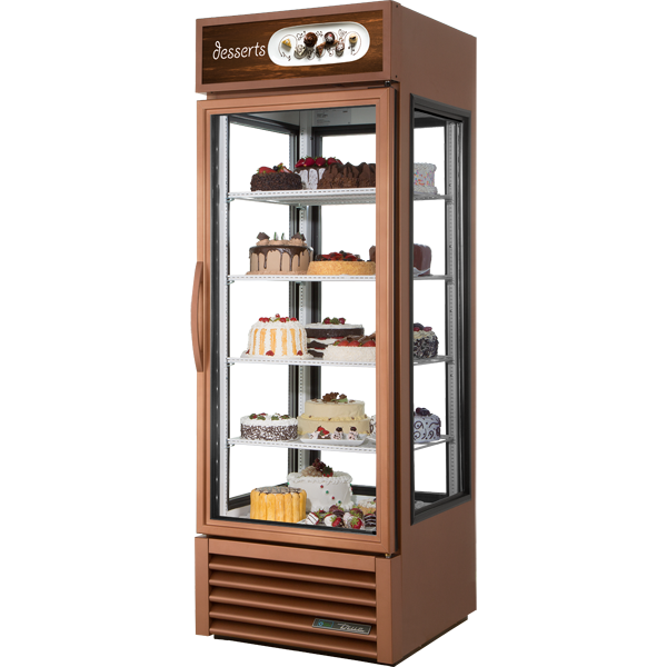 The world’s #1 manufacturer of glass door merchandisers. Factory engineered, self-contained, capillary tube system using environmentally friendly R290 hydro carbon refrigerant that has zero (0) ozone depletion potential (ODP), & three (3) global warming potential (GWP). High capacity, factory balanced refrigeration system that maintains cabinet temperatures of 33°F to 38°F (.5°C to 3.3°C). Exterior – attractive, high luster copper powder coated finish. Interior – attractive, white aluminum interior liner with stainless steel floor. LED interior lighting provides more even lighting throughout the cabinet. Safety shielded. Door is self closing with a positive seal, torsion type closure system. “Low-E”, double pane thermal insulated glass in door assembly, sides and rear. The latest in energy efficient technology. Illuminated exterior front sign panel.