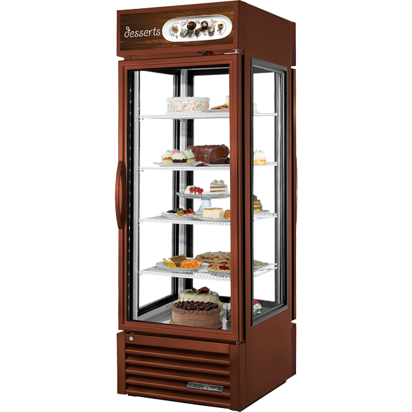 The world’s #1 manufacturer of glass door merchandisers. Factory engineered, self-contained, capillary tube system using environmentally friendly R290 hydro carbon refrigerant that has zero (0) ozone depletion potential (ODP), & three (3) global warming potential (GWP). High capacity, factory balanced refrigeration system that maintains cabinet temperatures of 33°F to 38°F (.5°C to 3.3°C). LED interior lighting provides more even lighting throughout the cabinet. Safety shielded. Exterior – attractive, high luster copper powder coated finish. Interior – attractive, white aluminum interior liner with stainless steel floor. Pass-thru design allows access into unit from two sides. Doors are self closing with a positive seal, torsion type closure system. “Low-E”, double pane thermal insulated glass in door assemblies and sides. The latest in energy efficient technology. Illuminated exterior front and rear sign panels.