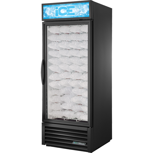 The world’s #1 manufacturer of glass door merchandisers. Designed using the highest quality materials and components to provide the user with an attractive, point of purchase ice merchandiser. High capacity, factory balanced refrigeration system, maintains 20°F to 25°F (-6.6°C to -3.8°C) cabinet temperature. Exterior – non-peel or chip black powder coated cold rolled steel; durable and permanent. Interior- attractive, white aluminum interior liner with stainless steel floor. Interior floor rack and backguard standard. Self closing door. Positive seal, torsion type closure system. Triple pane thermal insulated glass door assembly. Anti-fog film adhered to the glass pane to minimize condensation build up on glass for more effective merchandising LED interior lighting provides more even lighting throughout the cabinet. Safety shielded. Entire cabinet structure is foamed-in-place using a high density, polyurethane insulation that has zero ozone depletion potential (ODP) and zero global warming potential (GWP). Holds (54) 8 lbs. (4 kg) bags of ice.