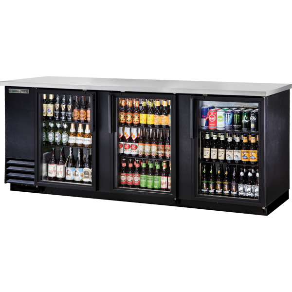 True’s refrigerated back bar coolers are designed with enduring quality and value. Our commitment to using the highest quality materials and oversized refrigeration assures colder product temperatures and years of trouble free service. Factory engineered, self-contained, capillary tube system using environmentally friendly R290 hydro carbon refrigerant that has zero (0) ozone depletion potential (ODP), & three (3) global warming potential (GWP). High capacity, factory balanced refrigeration system that maintains cabinet temperatures of 33°F to 38°F (.5°C to 3.3°C) for the best in food preservation. Exterior – Black, powder coated cold-rolled steel with stainless steel countertop. Interior – Stainless steel floor with 1/2" (13 mm) reinforced lip and heavy gauge galvanized steel walls. NSF/ANSI Standard 7 compliant for packaged and bottled product. Positive seal doors. "Low-E", double pane thermal glass door assemblies with extruded aluminum frames. The latest in energy efficient technology. LED interior lighting provides more even lighting throughout the cabinet. Safety shielded. Entire cabinet structure is foamed-in-place using a high density, polyurethane insulation that has zero ozone depletion potential (ODP) and zero global warming potential (GWP).