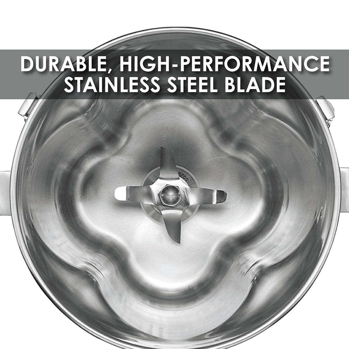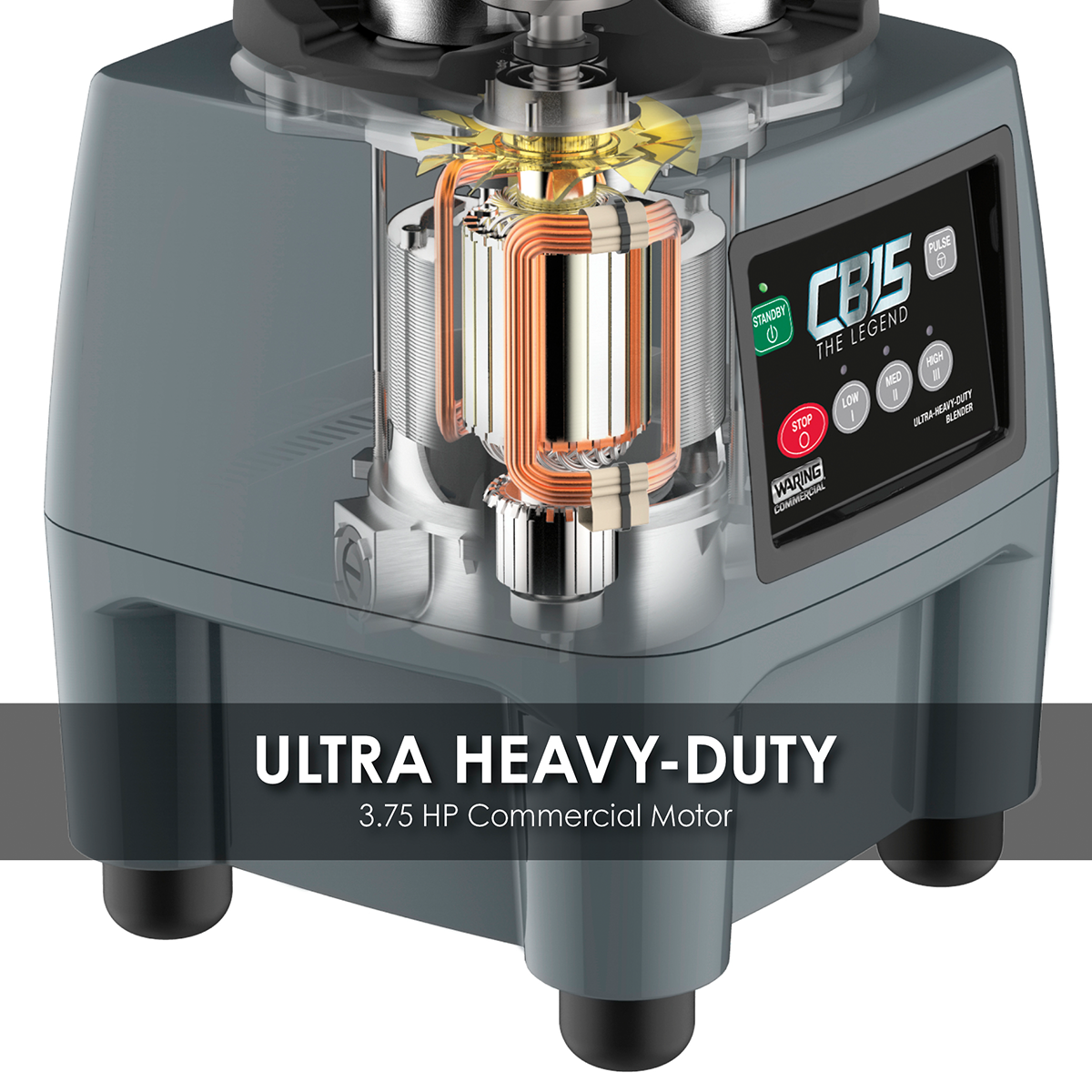- Ultra heavy-duty, 3.75 HP commercial motor—perfect for large loads and long blending times.