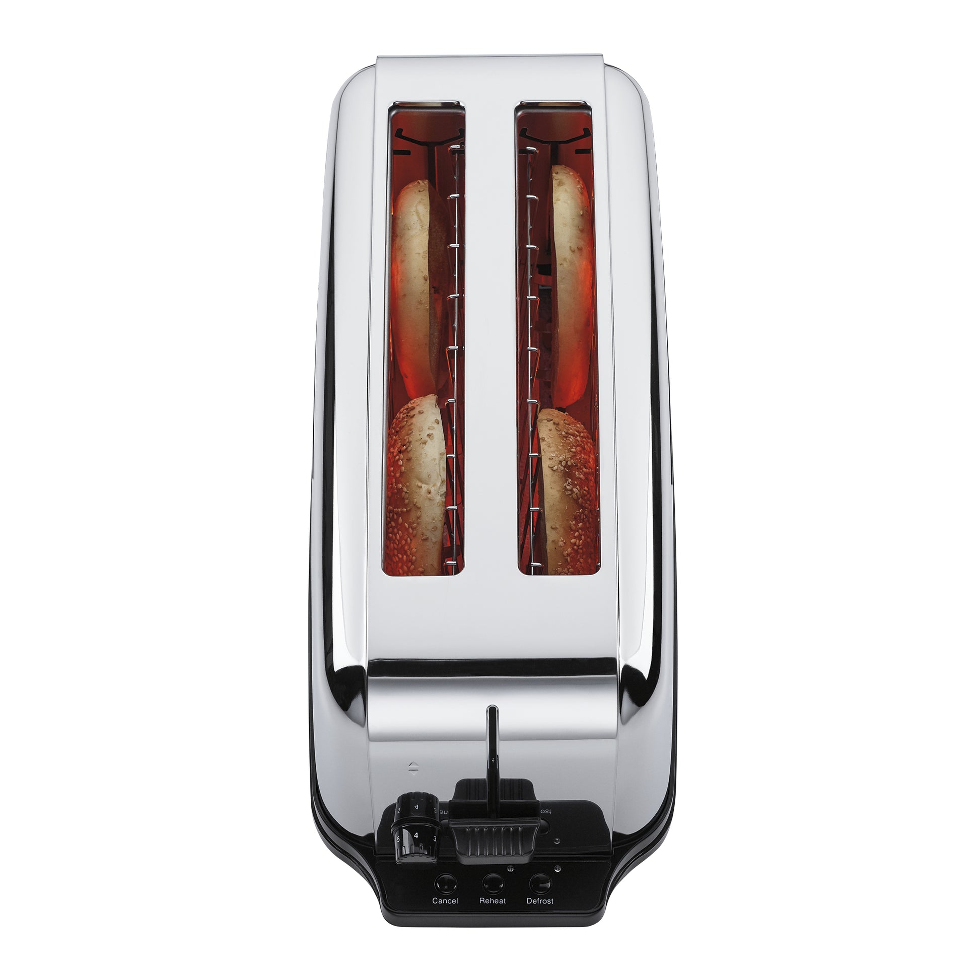 Get reliable performance and a contemporary look with the Waring® WCT704 Light-Duty 4-Slice 2-Slot Toaster. Defrost and toast frozen bread with the touch of a button. Easily remove smaller foods like English muffins with the extra-high lift control. Includes two long, wide slots perfect for 2 long slices of thick Italian bread, or 4 slices of regular-size bread.