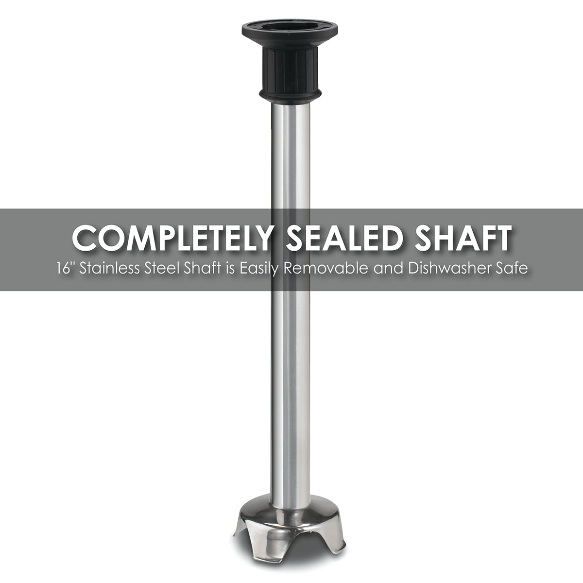 - Completely sealed 16″ stainless steel shaft is easily removable and dishwasher safe.